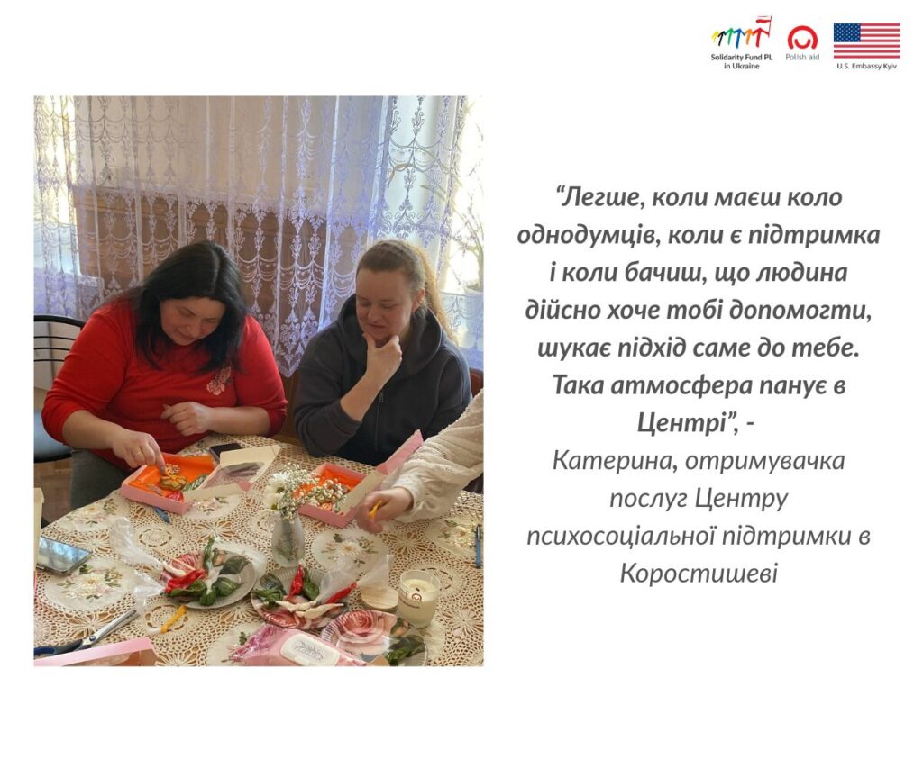 «Коли в Коростишеві з’явився такий центр, це було просто чудово. Я пам’ятаю, як подумала: “Хух, слава Богу, тепер буде мені кому допомогти”», — каже Катерина.