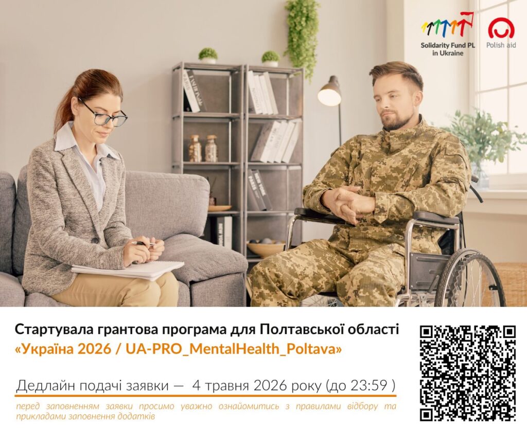 Представництво Фонду міжнародної солідарності в Україні оголошує Грантову програму «Україна 2026/UA-PRO_MentalHealth_Poltava», яка реалізується в межах проєкту «Психосоціальна реінтеграція на місцевому рівні осіб, які постраждали від війни».